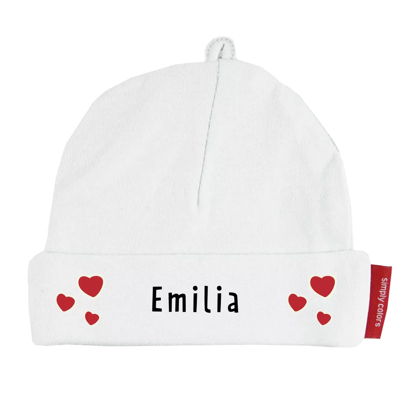 Die Babymützchen von simply colors können mit dem Namen des Babys bedruckt werden. In vielen Farben!! Ideal als Taufgeschenk oder zur Geburt!