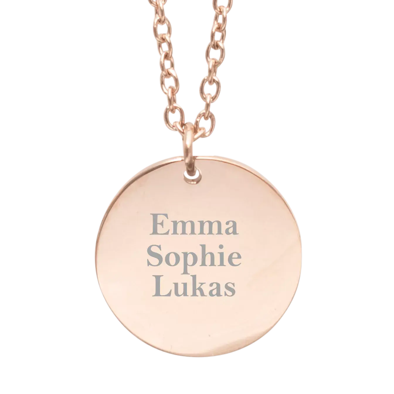 Halskette mit rundem Anhänger aus Silber, Rosé oder Gold mit Gravur