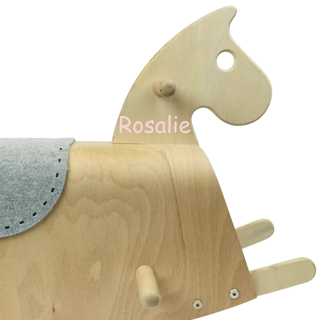 Und das Beste daran ist, dass Sie das Schaukelpferd personalisieren können. Erstellen Sie ein einzigartiges Element, indem Sie den Namen Ihres Kindes eingeben. Diese wird dann auf den Hals des Schaukelpferdes gelegt. Es stehen mehrere Druckfarben zur Auswahl. So können Sie es ganz nach Ihrem Geschmack gestalten.
