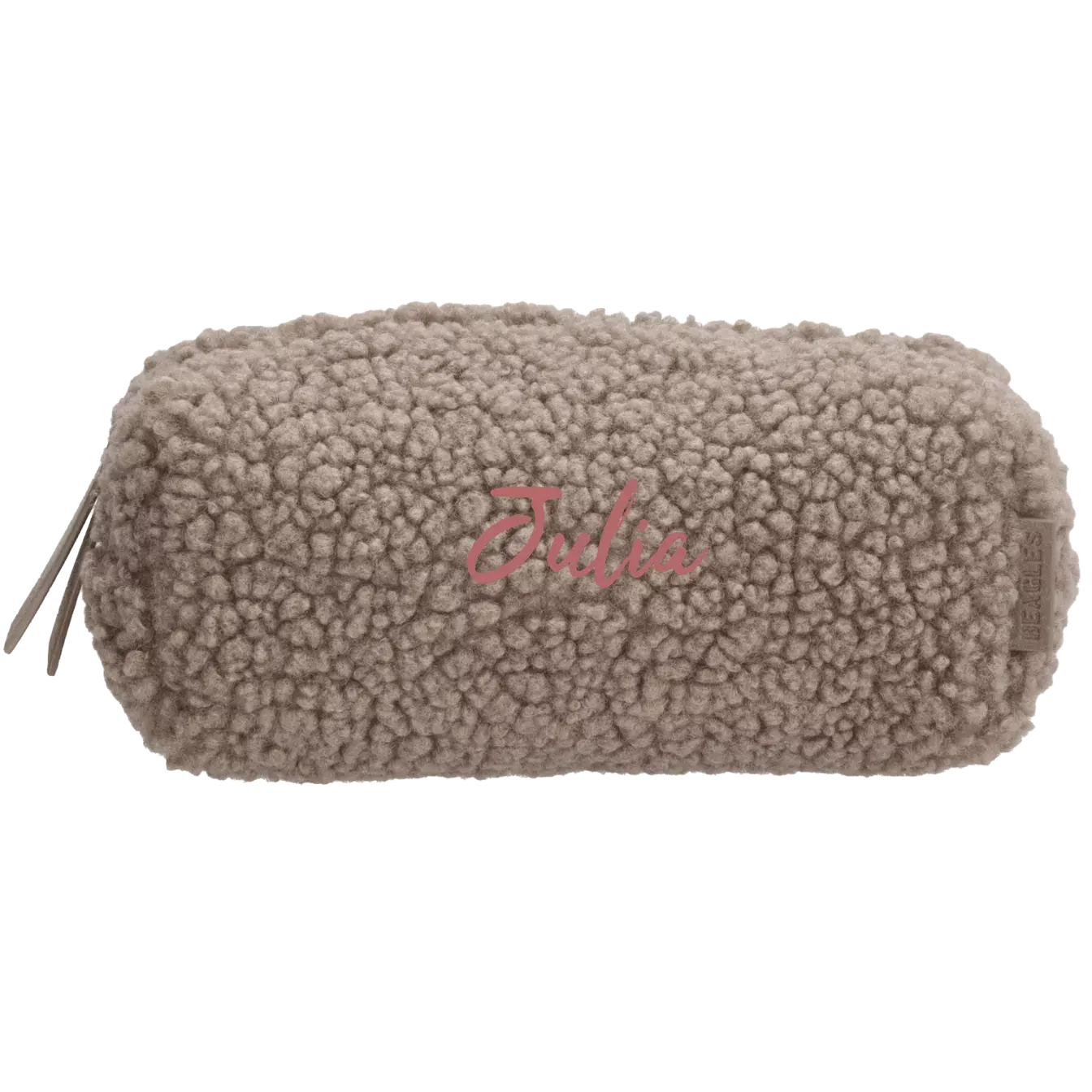 Niedliches Federmäppchen mit Namen aus weichem Teddymaterial und in 3 warmen Farben erhältlich. Wir sticken Ihren Namen auf die Vorderseite des Beutels.